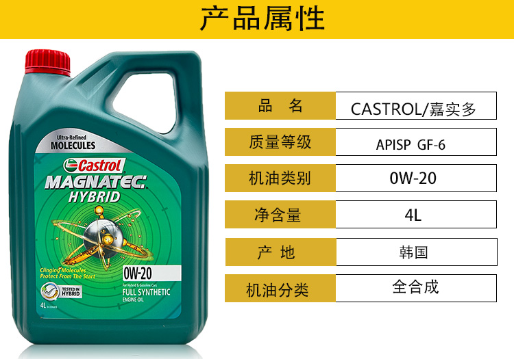 正品进口嘉实多磁护0W20全合成机油汽车发动机润滑油SP4L